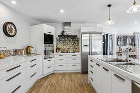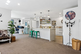 Thoughtfully designed to maximise all-day sun, the home makes an immediate impression with its striking curved entry, setting a tone of warmth and elegance from the moment you arrive. At the heart of the home sits a beautifully appointed kitchen, perfectly positioned to connect both casual family living and more formal entertaining spaces.