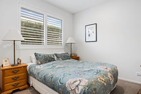 Both bedrooms are inviting and light filled, each featuring elegant wooden shutters that add charm and a touch of sophistication. The modern bathroom is well appointed, and the home's double glazing, heat pump, and quality curtains ensure year round comfort.