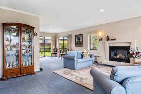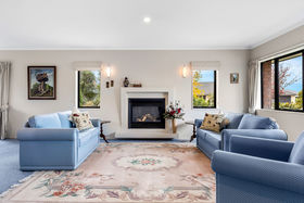 Inside, you'll find four bedrooms, including a very generous sunny main bedroom with a walk-in robe, ensuite, heat pump, and direct patio access. The bathrooms are tiled, and there is a separate toilet. The layout is perfect for families, featuring a spacious separate lounge with a gas fire, plus an open-plan kitchen and dining/living area.